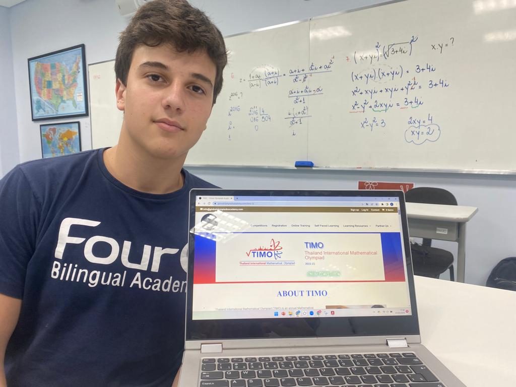 O aluno Thiago Zopone, do Ensino Médio, conquistou medalha de prata na Olimpíada Internacional da Tailândia – TIMO. No formato online, a competição é mundial e apenas 5 brasileiros foram classificados, entre eles o Thiago. A classificação possibilitou que o aluno fosse convidado para participar da competição “TIMO Finals”, prevista para abril de 2023.