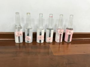 Você já tocou um xilofone? Os alunos do 8º e 9º ano confeccionaram o instrumento utilizando garrafas, água e um diapasão para ajudar na afinação. A proposta veio dentro dos estudos das ondas sonoras e da acústica, nas aulas de Música deste trimestre. Os alunos foram divididos em duplas e cada uma ficou responsável por uma nota. No final, utilizaram um afinador elétrico para conferir e corrigir, caso fosse necessário.