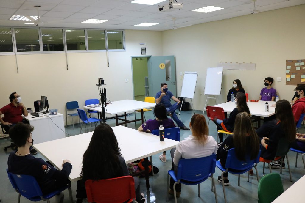 Estudantes da 1ª e 2ª séries do Novo Ensino Médio receberam no dia 02/02 a visita do jornalista Daniel Schafer, que atua como gerente de jornalismo e apresentador de telejornal da TV TEM. O jornalista foi convidado para compartilhar suas experiências profissionais com os estudantes dentro da disciplina eletiva de ‘Comunicação: laboratório de produção jornalística’, ministrada pelo professor de Língua Portuguesa, Roberto Caliani Janeiro.