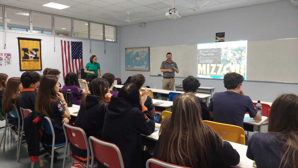 No intuito de auxiliar os alunos nos processos de aplicação para universidades no exterior, a FourC recebeu no dia 13 de setembro o diretor de admissões internacionais da Universidade de Missouri, Ryan Griffin e a representante da universidade no Brasil, Renata Vaccari. A instituição é parceira da escola no desenvolvimento do programa High School. Ryan conversou com os alunos do 9º ano e Ensino Médio sobre o processo de admissão da Missouri, tirando dúvidas e apontando sobre oportunidades acadêmicas e bolsas de estudos.