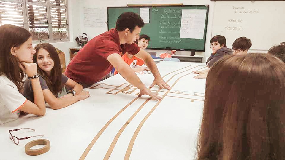 Na aula de Geografia, com o professor Rodrigo Rafacho, os alunos representaram o plano piloto de Brasília em um momento de grandes reflexões e participação colaborativa.