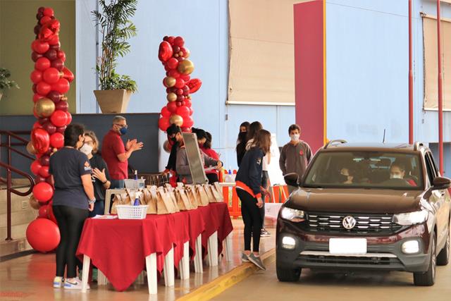 Durante o dia, as famílias participaram do drive thru que envolveu dois projetos da escola. Os alunos do 9º ano arrecadaram 400 quilos de alimentos não perecíveis, que serão doados às famílias em situação de vulnerabilidade em Bauru. Já os alunos do 3° ano do Ensino Médio, que estão envolvidos no Projeto Partilha, realizaram a venda de 350 kits e as famílias que compraram puderam passar para retirar – o valor arrecadado será revertido para o projeto.