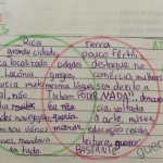 Dentro do tema Grécia, um dos assuntos abordados foi Atena e Esparta. Os alunos organizaram os repertórios histórico-culturais e conheceram as manifestações culturais, econômicas, políticas e sociais do período. Ao final fizeram, como produto, um Diagrama de Venn, mostrando as semelhanças e diferenças entre as cidades da Grécia Antiga. Confira alguns dos diagramas: