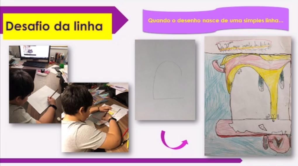 Os alunos estão investigando e explorando a criatividade por meio de atividades propostas de leitura de obras de arte, criando narrativas e também desenvolvendo desafios criativos. Confira algumas das evidências: