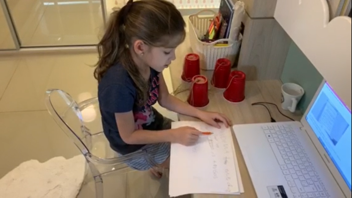 Na FourC, o processo de leitura e escrita envolve várias etapas. A habilidade de escrever se adquire junto com a de ler e, com a aprendizagem a distância, foi necessário criatividade no processo. Em aulas presenciais, uma das etapas desse processo é o texto coletivo. No ambiente de aprendizagem a distância, a atividade foi adaptada e o texto narrativo coletivo foi escrito durante as videoconferências dos módulos de leitura e escrita.
