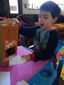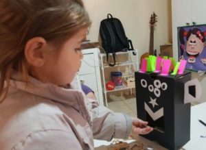 Para montar o Mr. Monster os alunos utilizaram materiais que tinham em casa como, por exemplo: caixa de sapato, caixa de leite, sacola de papel, garrafa de plástico e outros materiais que podem ser reutilizados. É importante pedir o apoio sempre de um adulto para cortar os materiais e, desta forma, promover também momentos divertidos entre pais e filhos.